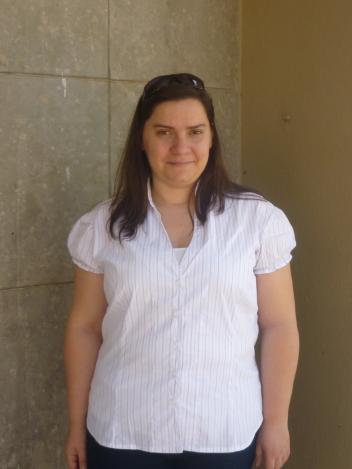 Agora fiz uma versão de manga curta, para poder levá-la para o escritório durante o Verão.